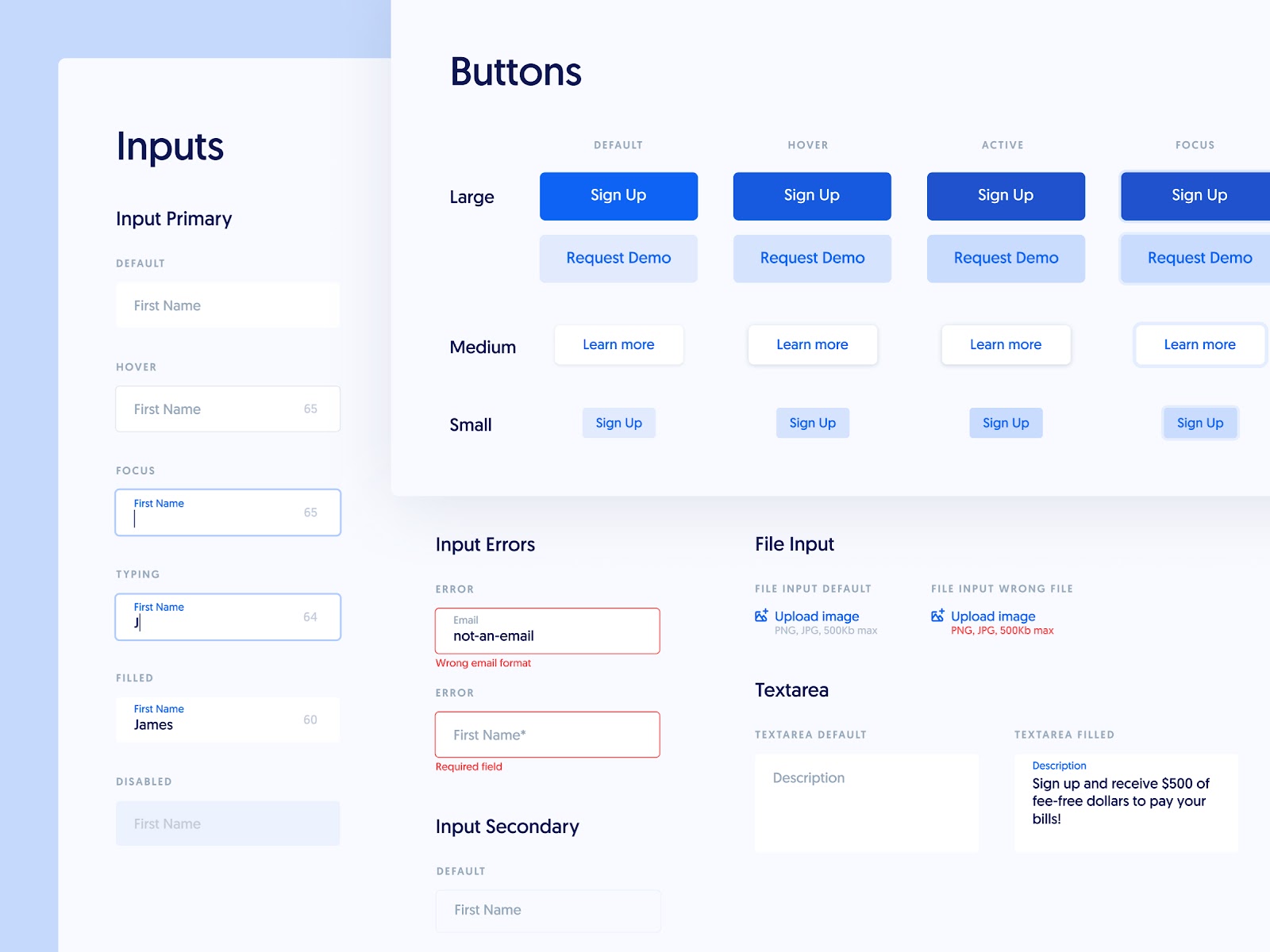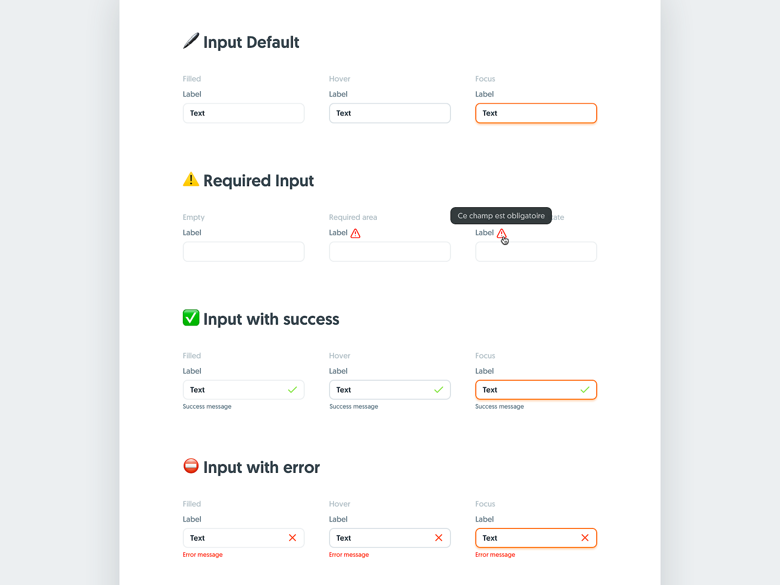 When creating styles for your form inputs you should think about every possible state they can be in. This includes not only error and confirmation states but also disabled, hover and focused states for screen readers. Each of these states should also go through an accessibility check to ensure they are readable to all users.